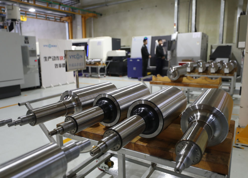 (在沈陽微控新能源技術(shù)有限公司車間拍攝的由航天級合金鋼材制成的轉(zhuǎn)子。新華社記者楊青 攝)